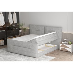 Ce modèle se caractérise par d’intéressantes coutures qui courent de part et d’autre de la tête de lit et se rejoignent en son point central. Les pieds hauts et fins ajoutent de la légèreté à la structure. Le lit est disponible en deux versions : une version équipée d’un système de réglage manuel de la hauteur, qui permet d’ajuster le matelas à vos besoins individuels, et une version dotée d’un conteneur, qui permet de ranger le linge de lit.